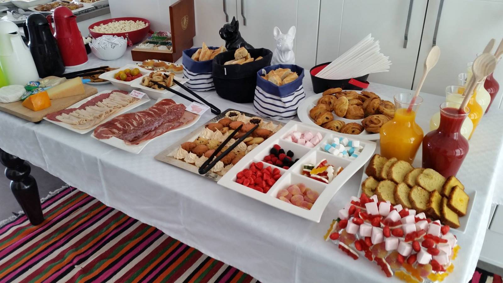 Yavait un buffet bien garni partie sale avéc différentes salades, terrines de viandes, charcuterie et fromage très très bons, tarte, et beaucoup d’autres variétés très bonnes- y avait aussi lé buffet classique avéc cafe, lait, THE et viennoiserie ainsi que petit four et cake