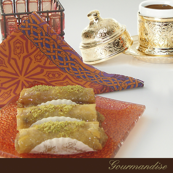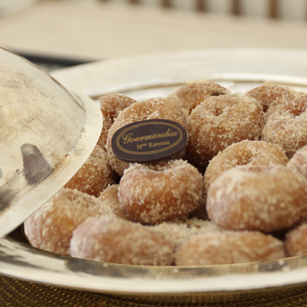 | Mâassem | Doigts de malsouka fourrés de crème à la vanille et fruits secs. |